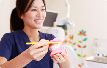 装着した後は、矯正中の歯みがき方法をご指導いたします。また、日常生活での注意点などもご説明します。
