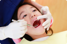 乳歯や生えたての永久歯は歯の質が弱いため、定期的にフッ素によって歯質を丈夫にすることが大切です。また、効果的にフッ素を作用させると、初期虫歯も治すことができます。